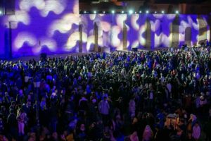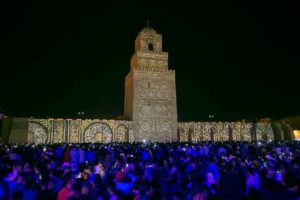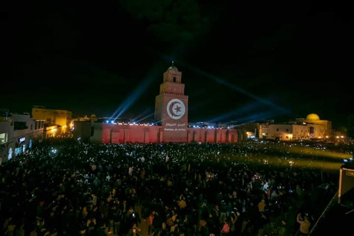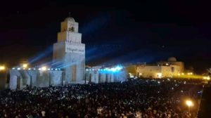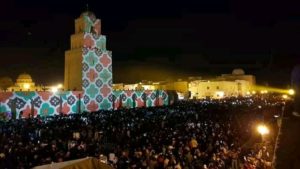 المنبر التونسي(القيروان) – احتضنت ساحة جامع عقبة ابن نافع مساء الجمعة 8 نوفمبر 2019 عرضا ضوئيا بحضور جمهور غفير، وتفاعل الحضور مع الأناشيد الدينية، احتفالا بذكرى المولد النبوي الشريف.