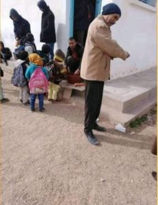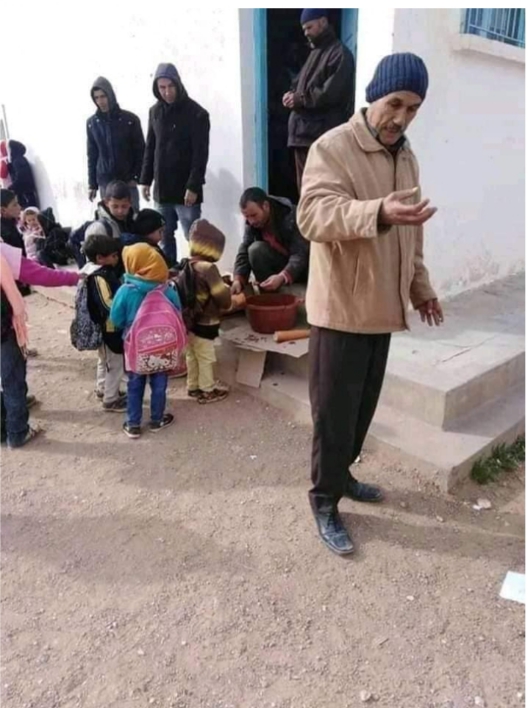 المنبر التونسي(القصرين) – تداولت صفحات التواصل الاجتماعي صورا لاحدى المدارس الابتدائية في ولاية القصرين تظهر عدد من التلاميذ و هم يتسلمون لمجتهم المتمثلة في خبز وهريسة.