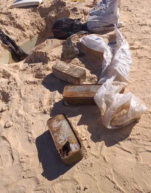 وتبين بعد فتحها وجود 8 صناديق حديدية بها 4000 خرطوشة من نوع كلاشنكوف وقد تعهدت الوحدة الوطنية لمكافحة الارهاب بالقرجاني بمواصلة البحث في الموضوع بعد التنسيق مع النيابة العمومية.