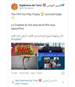 صورة: “الفيفا” يمنح الترجي التونسي جائزة “اللعب النظيف”