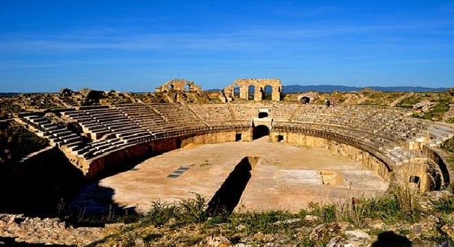 يوجد على أطراف المدينة من الناحية الشمالية وقد تمّ حفر حوالي ثلثي هذا المعلم على حساب هضبة بينما الواجهة الحالية توجد فوق مستوى سطح الأرض. يتكوّن المسرح المدرّج الذي تمّ انشاؤه في بداية القرن الثاني بعد الميلاد من ثلاثة عناصر: مستوى سفلي كان مخصّصا لإنزال الحيوانات والمصارعين، والحلبة حيث تجري عروض المصارعة، والمدارج المخصّصة للمتفرجين. وقد كانت طاقة إستيعاب هذا المعلم حوالي 17 ألف متفرّج، وهو بذلك يحتل المرتبة الثالثة في البلاد التونسية بعد الجم وقرطاج.