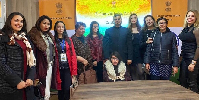 المنبر التونسي (اليوم الدولي للمرأة) – احتفلت سفارة الهند بتونس في 7 مارس 2020 باليوم الدولي للمرأة في مقر السفارة. وضمن الضيوف كان العديد من النساء من جميع مناحي الحياة الذين حققوا النجاح على الرغم من التحديات التي واجهنها. وكان من بين الحاضرين خديجة جلولي ، مؤسسة ومديرة تنفيذية لشركة HawKar، التي تقوم بتطوير عربات تتكيف مع الأشخاص ذوي القدرة المحدودة على الحركة. السيارة التي قاموا بإنشائها يمكن الوصول إليها مباشرة عن طريق كرسي متحرك إلى جانب كونها مدمجة، وسعرها في المتناول وصديقة للبيئة. كما حضر الحفل سناء هيشري ، الفنانة التونسية المشهورة بأعمالها البلاستيكية وأستاذة الفنون الحديثة. شارك الاثنان حياتهما وخبراتهما العملية مع الجمهور الذي وجد قصص حياته ملهمة.