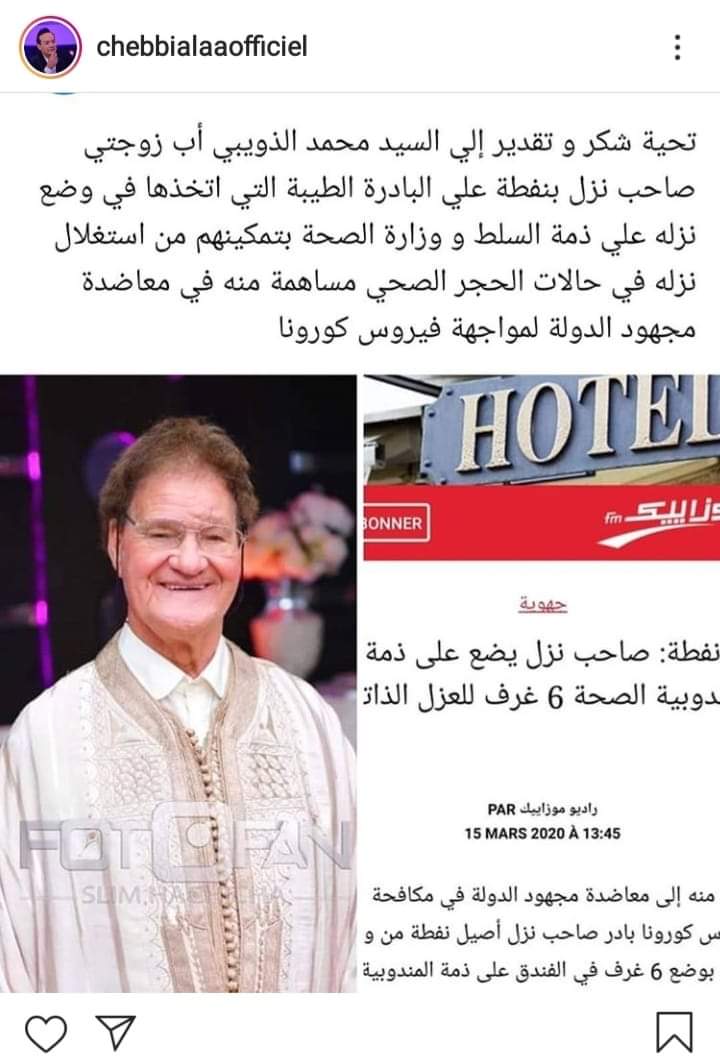 علاء الشابي يشكر والد زوجته صاحب النزل الذي خصص 6 غرف للعزل الذاتي في نفطة