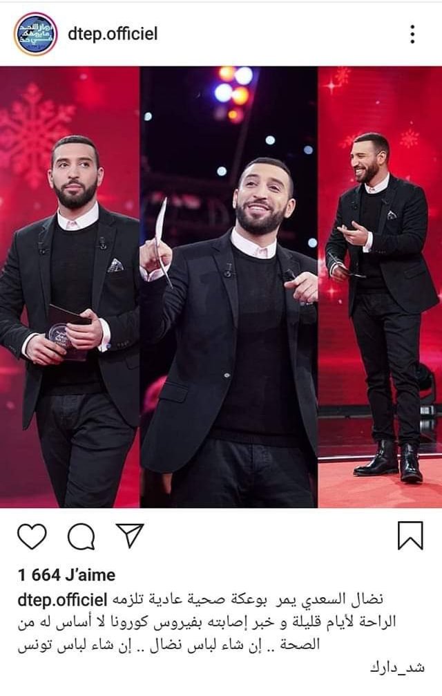 ونفت صفحة برنامج “نهار الأحد ما يهمك في حد”، الذي ينشطه نضال السعدي ما راج بخصوص إصابته بالكورونا وأنه تعرض لوعكة صحية تلزمه أيام قليلة من الراحة.