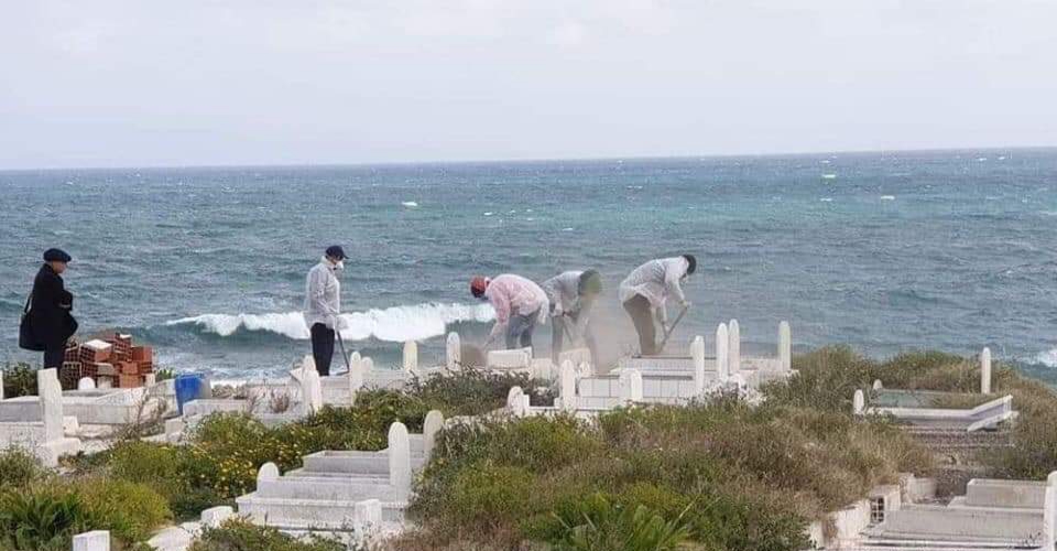 عملية دفن أول متوفية في تونس بفيروس كورونا بمقبرة المهدية .. رحمها الله ورزق أهلها وذويها جميل الصبر والسلوان ?