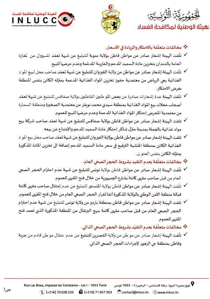 المنبرالتونسي(مكافحة الفساد) – نشرت الهيئة الوطنية لمكافحة الفساد بلاغا حول التبليغات الواردة عليها بخصوص مظاهر الإحتكار والتلاعب بالأسعار.