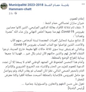 وجددت الدعوة لمتساكني المنطقة إلى ضرورة المكوث بمنازلهم والمزيد من الحذر والإنتباه عند الخروج الضروري والإلتزام التام بالحجر الصحي الذاتي.