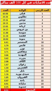 المنبر التونسي(كورونا) – يكون ترتيب الولايات الأكثر تضررا بفيروس كورونا بحسب معيار عدد السكان حسب الجهات، وفق الجدول التالي.