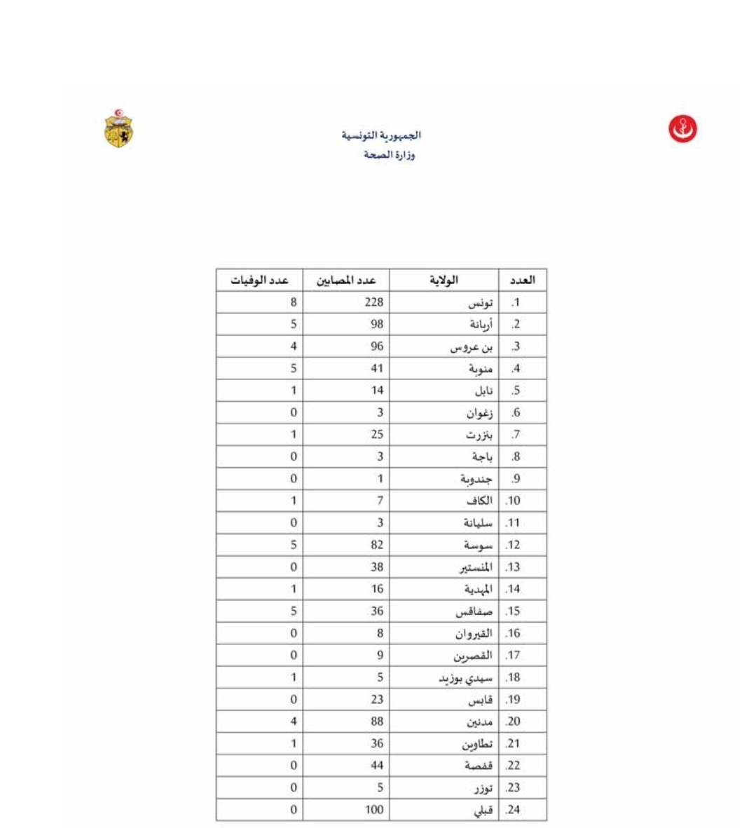 وتجدون عدد الإصابات والوفيات حسب الولايات في الجدول المصاحب.