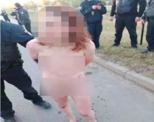 المنبر التونسي (القبض) – ﺿﺒﻄﺖ ﺍﻟﺸﺮﻃﺔ ﺍﻷﻭﻛﺮﺍﻧﻴﺔ ﺳﻴﺪﺓ ﻋﺎﺭﻳﺔ ﺗﻬﻴﻢ ﻋﻠﻰ ﻏﻴﺮ ﻫﺪﻯ ﻓﻲ ﺍﻟﺸﻮﺍﺭﻉ، ﺣﺎﻣﻠﺔ ﺑﻴﺪﻫﺎ ﺳﻜﻴﻨﺎ ﺩﺍﻣﻴﺔ ﻭﺑﺎﻟﻴﺪ ﺍﻷﺧﺮﻯ ﻛﻴﺴﺎ ﺑﻪ ﺭﺃﺱ ﺍﺑﻨﺘﻬﺎ .