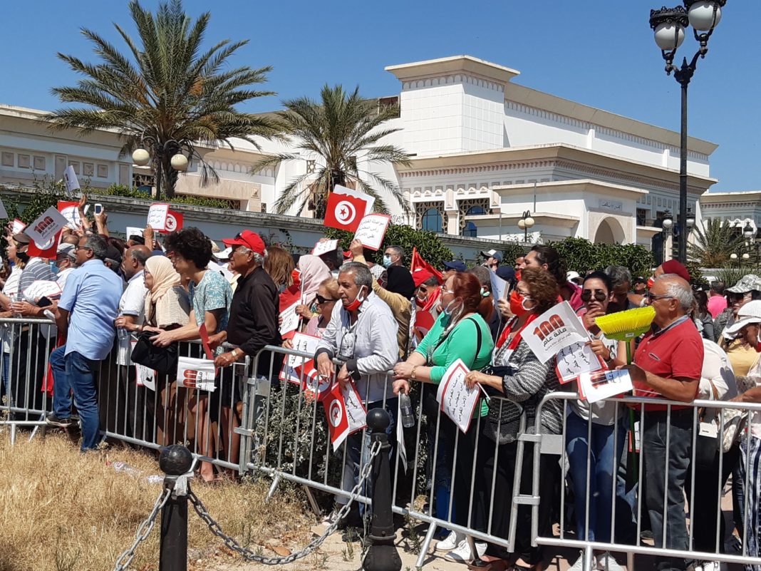 مباشرة من أمام مقر مجلس المستشارين باردو..وقفة مساندة لمطالب كتلة الحزب الدستوري الحر في إصدار البرلمان موقفا واضحا برفض التدخل الخارجي في ليبيا و مناهضة ان تكون تونس قاعدة لوجستية لتسهيل التدخلات الخارجية وتنفيذ الأجندا التوسعية لبعض الأطراف..