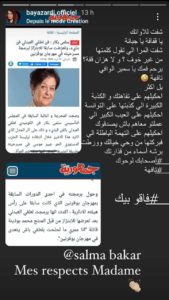 المنبر التونسي(بية الزردي) – نشرت الإعلامية بية الزردي تحديثة لها على الانستغرام هاجمت من خلالها الكرونيكوز خولة السليماني على خلفية مساندتها للطفي العبدلي.