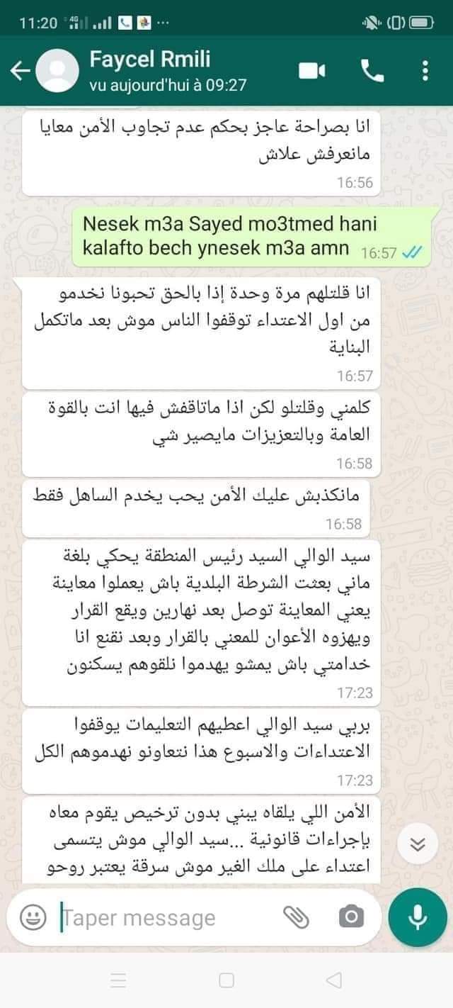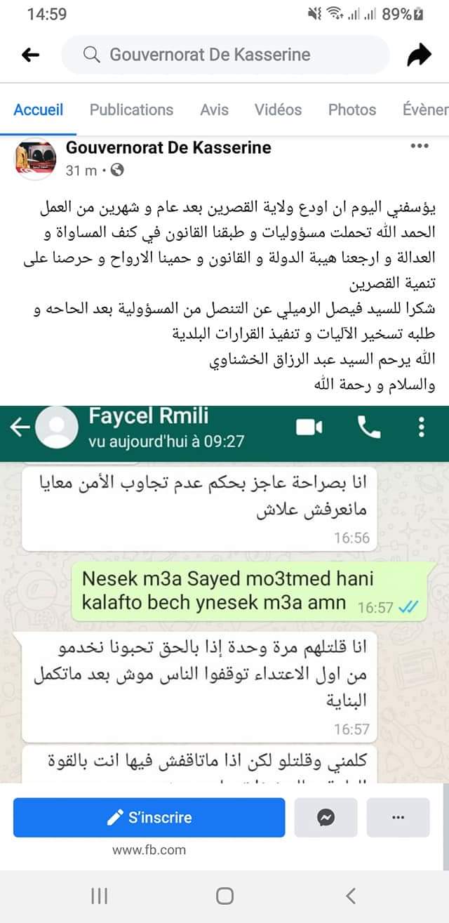 صور..بعد إقالته: والي القصرين ينشر محادثة له مع رئيس بلدية سبيطلة