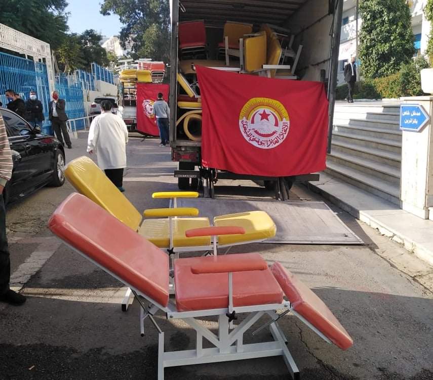 المنبر التونسي(اتحاد الشغل) – تبرّع الاتحاد العام التونسي للشغل إلى أقسام الاستعجالي بمستشفيات شارنيكول والرابطة وعبد الرحمان مامي والياسمينات بحضور الامين العام نور الدين الطبوبي والسيد وزير الصحّة.