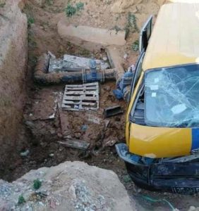 المنبر التونسي(سقوط تاكسي جماعي) – أصيب 9 أشخاص في حادثة سقوط سيارة تاكسي جماعي في حفرة أشغال تابعة لشركة الصوناد في منطقة العقبة من ولاية منوبة.