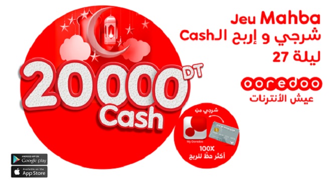 المنبر التونسي (أوريدو) – تمنح أوريدو لحرفائها الكرام فرصة الفوز بجائزة مالية قدرها 20000 دينار يوم 26 رمضان.
