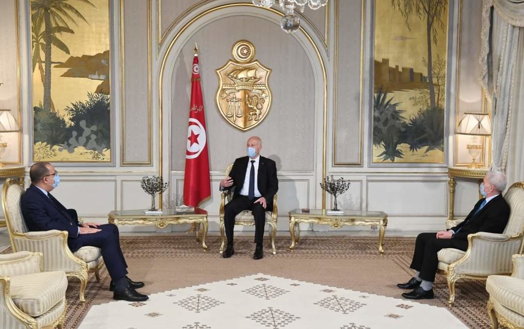 المنبر التونسي (قيس سعيد) – أكد رئيس الجمهورية قيس سعيد، خلال لقائه مع هشام المشيشي رئيس الحكومة والمكلف بتسيير وزارة الداخلية بالنيابة وإبراهيم البرتاجي وزير الدفاع الوطني، اليوم الأربعاء 26 ماي 2021، أن هناك 25 قضية مرفوعة ضد نواب بمجلس نواب الشعب.