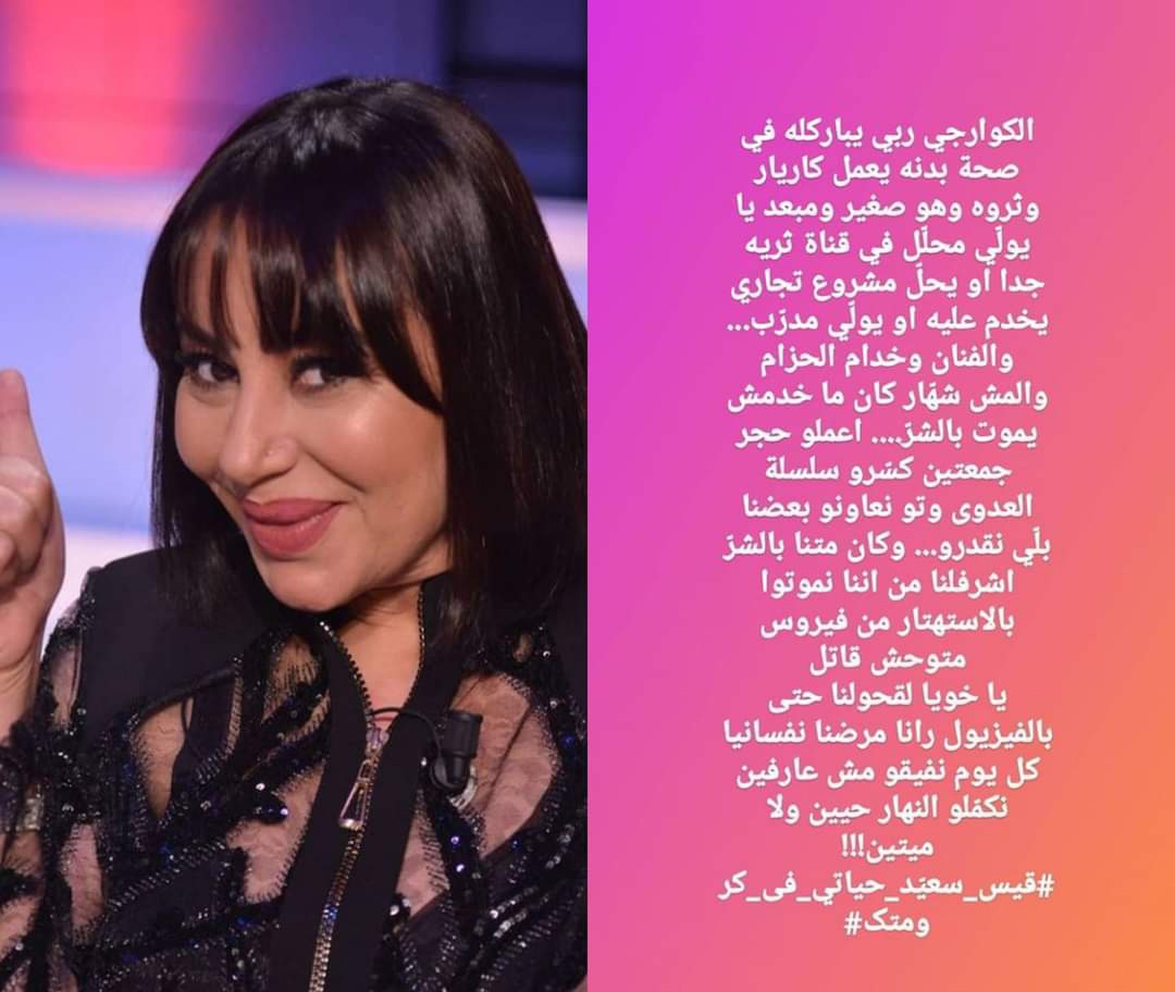 المنبر التونسي(منال عبد القوي) – علقت الممثلة منال عبد القوي على الوضع الوبائي في تونس واستهتار الحكومة امام ارتفاع عدد الاصابات والوفيات وانتشار عدوى الفيروس وظهور سلالات جديدة.