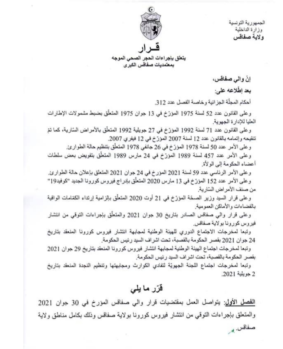 كورونا ..تطويق معتمديات صفاقس الكبرى بكافة معتمدياتها