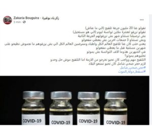 وقال بوقيرة في تدوينة على صفحته بالفيس بوك حتى كان عنا تلاقيح العالم الكل واطباء وممرضين العالم الكل الي بش يزرقوهم ما نجموش نطيحو على شهرين مستنية قبل ما يعطي مفعولو ..في الشهرين هذوما الاف التوانسة بش يموتو”.