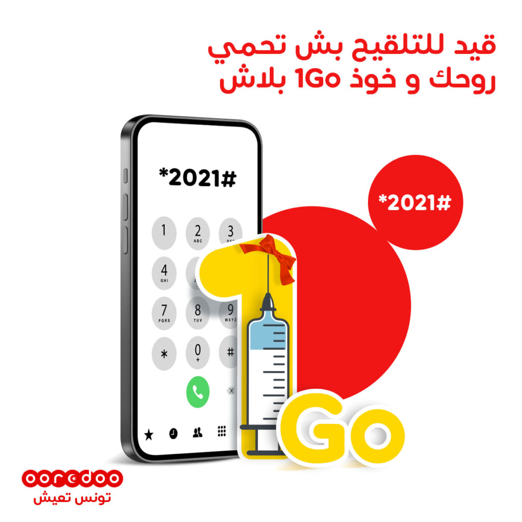 المنبر التونسي (ooredoo) – قصد تشجيع مشتركيها على التلقيح ضد كوفيد-19، تمنح Ooredoo 1 جيغابايت انترنيت على كلّ عملية تسجيل في منظومة إيفاكس تتم من خلال الرمز *2021#. يتم منح هذه العلاوة بصفة آلية بمجرّد تأكيد التسجيل في المنظومة ويتم الاستفادة منها على امتداد شهر كامل (30 يوما).