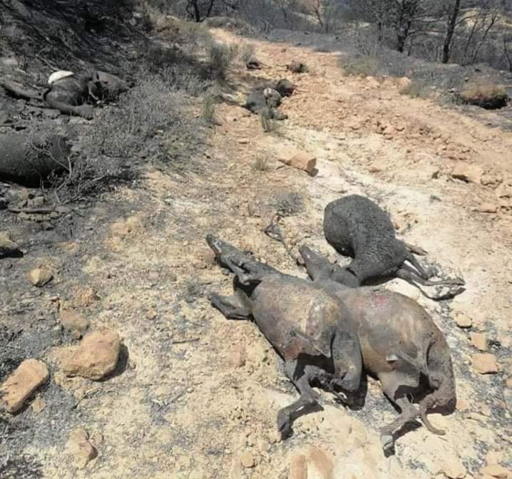 حيوانات تحترق..أضرار جسيمة بعد الحرائق التي شهدتها منطقة فج حسين بغار الدماء(صور)