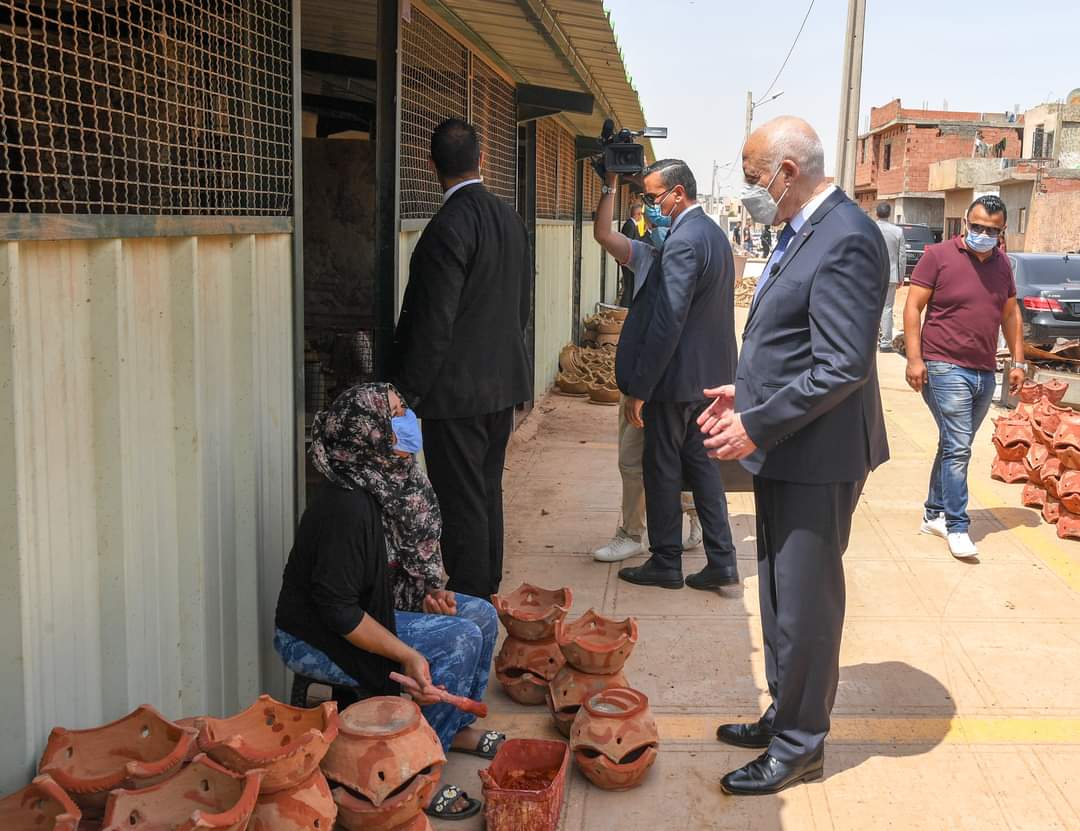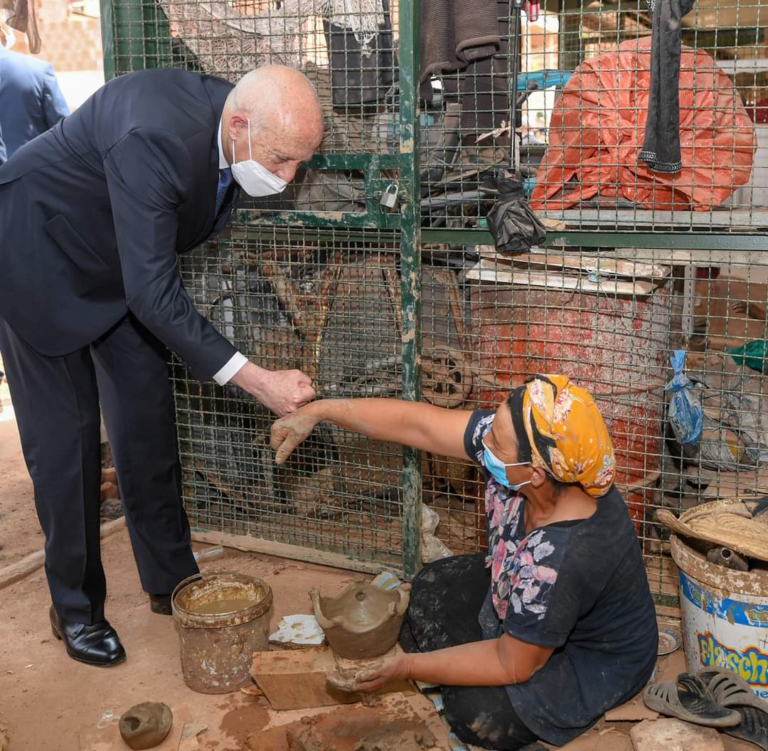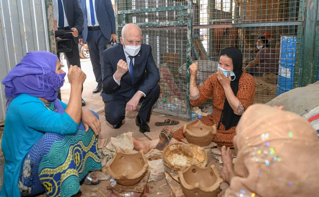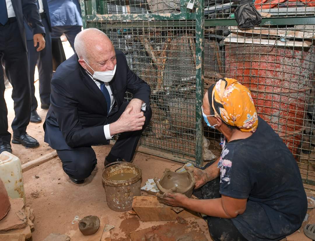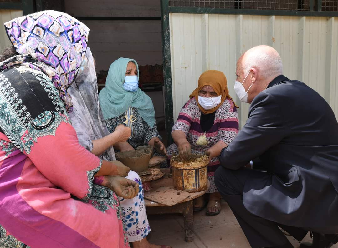 المنبر التونسي (قيس سعيد) – بمناسبة الاحتفال بعيد المرأة، تنقل رئيس الجمهورية قيس سعيد، بعد ظهر اليوم الجمعة 13 أوت 2021، إلى منطقة حي هلال بتونس العاصمة أين زار مجموعة من النساء الحرفيات في مجال صناعة الطين.