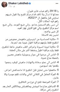 وقال الدكتور لهيذب، في تدوينة نشرها على صفحته الرسمية بموقع فيسبوك: “حكاية الحساسية من البنيسيلين ماهومش ممنوعين من التلقيح فقط يلزمهم مراقبة اطول شوية بعد الجرعة”.