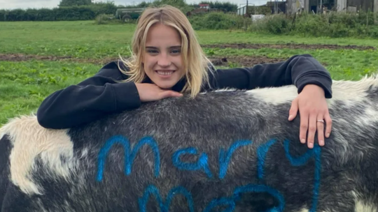 وقال لويس وايت (24 عاما) إنه استوحى الفكرة من ذكرياتهما بهذا المكان في بداية جائحة كورونا، حيث اشتريا معا هاتين البقرتين وتشاركا في تربيتها، مشيرا إلى أن خطيبته إميلي فرانسيس بدأت تبكي بعد أن قرأت المكتوب على ظهر إحدى البقرات.