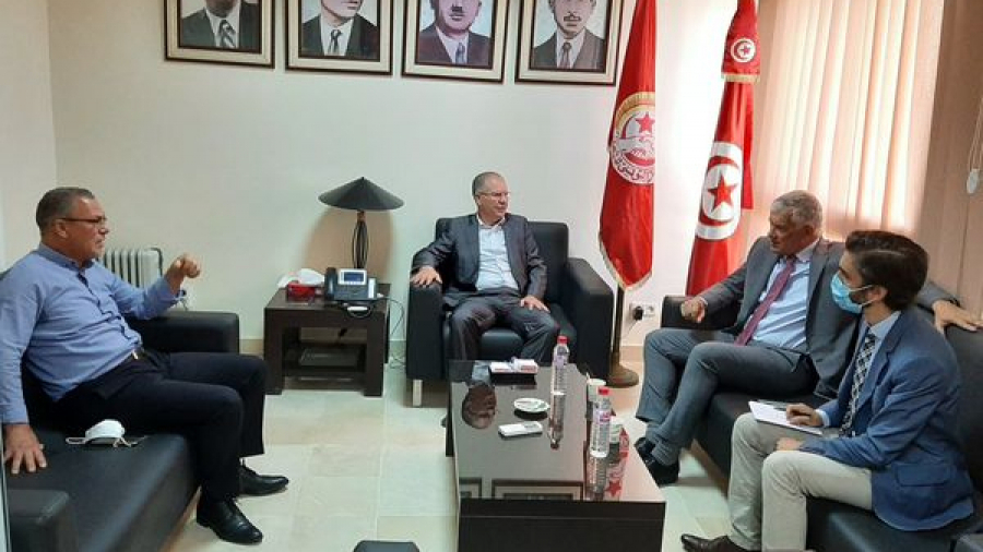 المنبر التونسي (سفير فرنسا) – التأم اليوم لقاء بين نور الدين الطبوبي الأمين العام للاتحاد العام التونسي للشغل وأندري باران سفير فرنسا بتونس بحضور الطاهر البرباري الكاتب العام للجامعة العامة لعمال المعادن والالكترونيك.