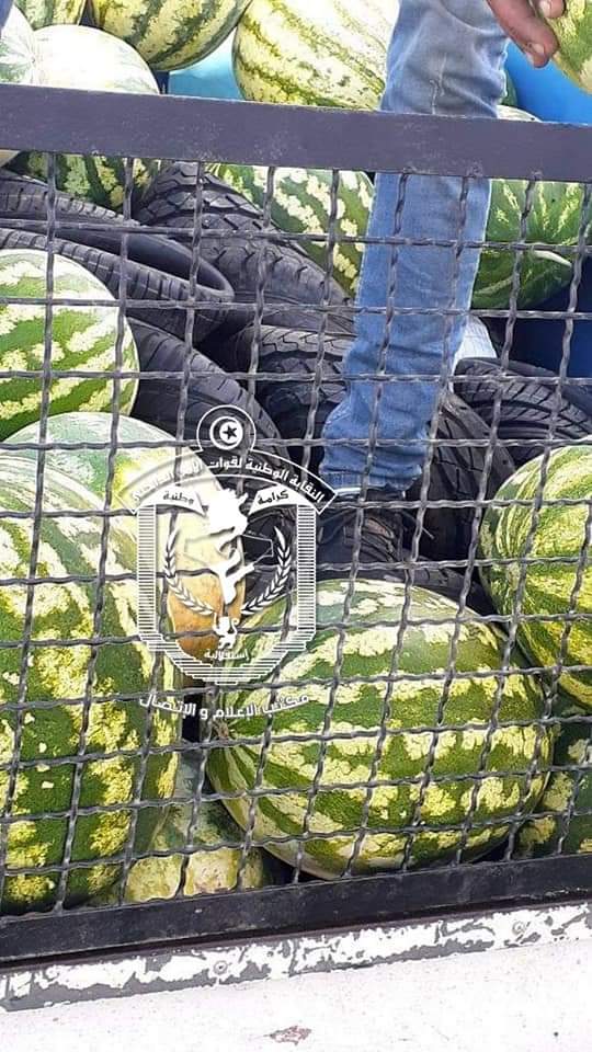 يهرّب العجلات المطاطية تحت كمية من ”الدلاع”