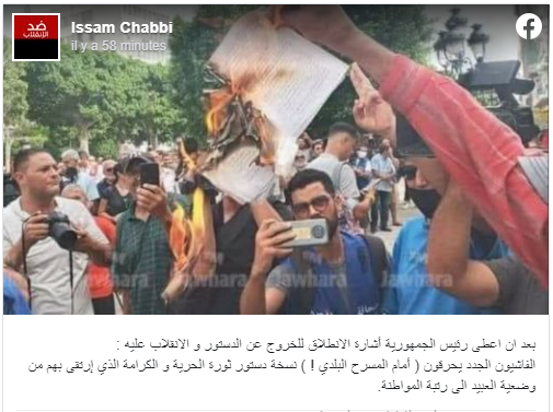 الشابي:”الفاشيون الجدد يحرقون نسخة دستور ثورة الحرية والكرامة الذي إرتقى بهم ..”