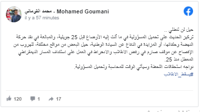 وقال القوماني في تدوينة على حسابه الشخصي بموقع التواصل الاجتماعي، ” نواجه استحقاقات اللحظة وسيأتي الوقت للمحاسبة وتحميل المسؤولية.”