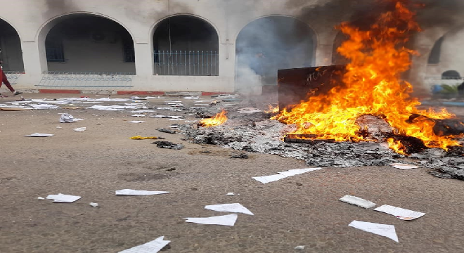المنبر التونسي (مركز الحرس بعقارب) – أقدم عدد من المحتجين صباح اليوم الثلاثاء 9 نوفمبر، على حرق مركز الحرس الوطني بمدينة عقارب من ولاية صفاقس.