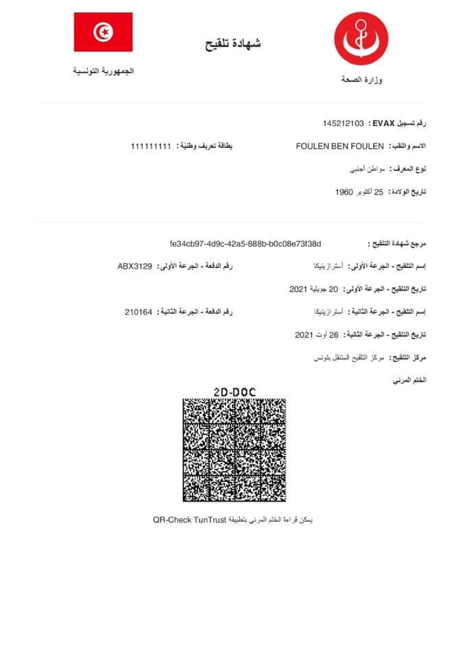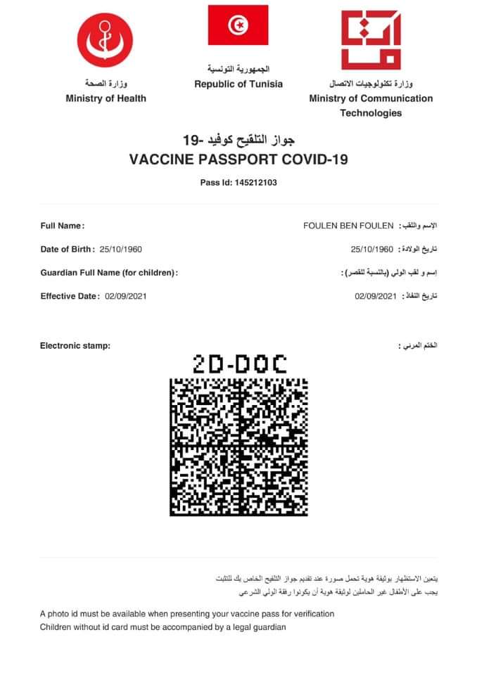 المنبر التونسي (شهادة تلقيح) – أكدت وزارة الصحّة أنّ النّموذج الرّسمي والوحيد لشهادة التلقيح وجواز التّلقيح ضدّ كوفيد-19 المعتمدين في تونس يمكن الاستظهار به ورقيّا أو تحميله على الهاتف الذكيّ أو الحاسوب.
