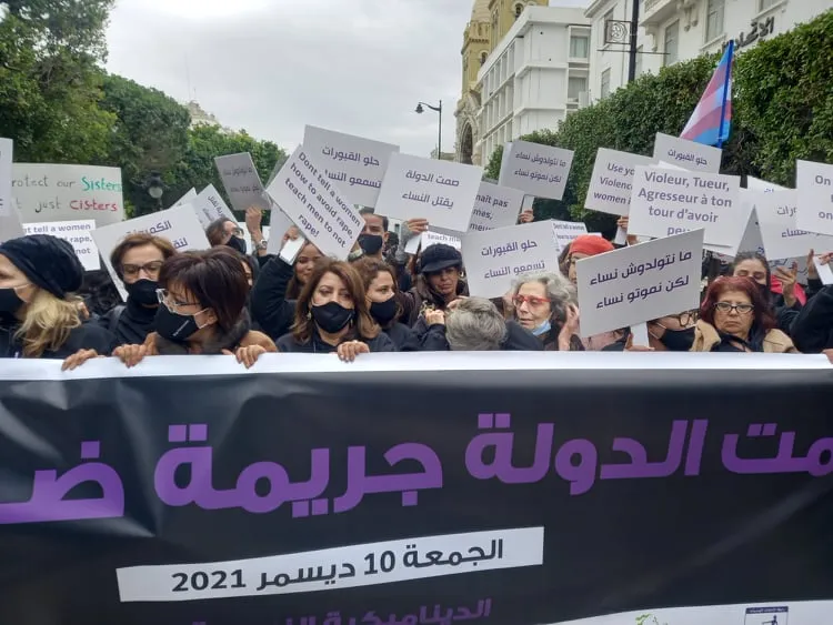 وقالت رئيسة الجمعية التونسية للنساء الدموقراطيات نائلة الزغلامي في تصريح اعلامي إن تجمعهم هو للدعوة ورفع صيحة فزع بضرورة وقف تقتيل النساء والعنف الممارس عليهن معتبرة صمت الدولة جريمة في حق النساء المعنفات واللاتي توفين خلال مسيرتهن بمناسبة اليوم العالمي لاعلان حقوق الإنسان.