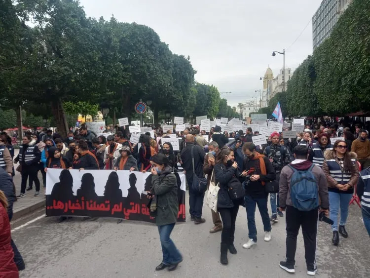 المسيرة انطلقت من أمام تمثال العلامة ابن خلدون بالعاصمة مرورا بشارع الحبيب بورقيبة والتوجه مباشرة نحو ساحة حقوق الإنسان بشارع محمد الخامس للتنديد بكل أشكال العنف المسلط ضد النساء بدعوة من الديناميكية النسوية التي اطلقت المسيرة الصامتة.