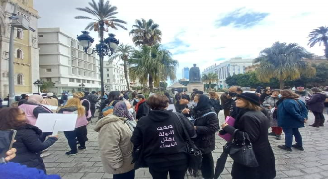 وأضافت أنهن اخترن الصمت كطريقة احتجاجية تحيل على صمت دولة أمام ماتتعرض له النساء في الفضاءات العامة والخاصة والأسرة والفضاءات السياسية وبمراكز العمل من تهديدات .