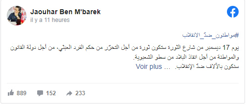 وأضاف بن مبارك في تدوينة على صفحته الرّسمية على موثع فايسبوك “سنكون بالآلاف ضدّ الإنقلاب”.