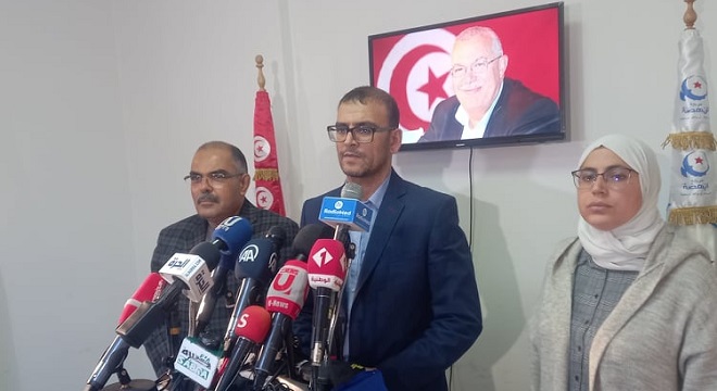المنبر التونسي (نود الدين البحيري) – على خلفية الاعتداء على زوجة نور الدين البحيري اليوم واقتياده إلى مكان مجهول، عقدت حركة النهضة ندوة صحفية أكدت من خلالها أن مدنيين قامو بالاعتداء على زوجة نور الدين البحيري وكذلك على الأجوار واجبارهم على دخول منازلهم عنوة وأنه تم اقتياد نور الدين البحيري إلى مكان هو مجهول إلى حد هذه اللحظة.