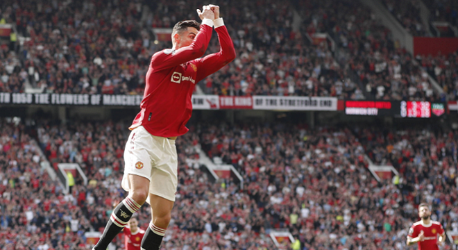 المنبر التونسي (كريستيانو رونالدو يسجل “هاتريك”) – سجل الأسطورة البرتغالي كريستيانو رونالدو، ثلاثية “هاتريك”، قاد بها مانشستر يونايتد للفوز على نوريتش سيتي (3-2)، أمس السبت، ضمن منافسات الجولة الـ33 من الدوري الإنجليزي الممتاز.