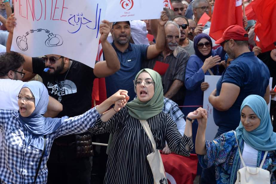 المنبر التونسي (جبهة الخلاص) – نفذت جبهة الخلاص الوطني، اليوم السبت 15 أكتوبر 2022، مسيرة احتجاجية تحت شعار “يسقط الانقلاب” و”يوم الانقاذ” تنديدا بنظام حكم الرئيس قيس سعيد.