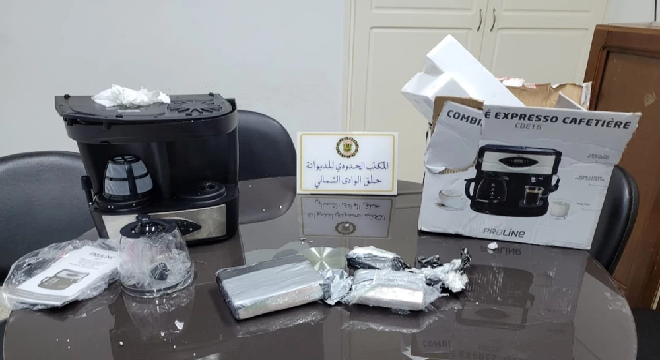 المنبر التونسي (ميناء حلق الوادي) – تمكنت مصالح الديوانة بميناء حلق الوادي الشمالي من حجز كمية من مخدر الكوكايين مخفية بإحكام داخل آلة لطهي القهوة داخل أدباش مواطن تونسي مقيم بالخارج قادم من ميناء مرسيليا، حيث كان المشتبه به مرفوقا بأفراد عائلته على متن سيارة ذات ترقيم أجنبي، وقد تشكك أعوان الديوانة المكلفين بالتفتيش في محتوى ادباش المسافر المذكور وبتمريرها على جهاز الكشف بالأشعة تبين وجود أجسام غريبة داخل آلة لتحضير القهوة مغلفة وتبدو كأنها لم يتم استعمالها بعد.