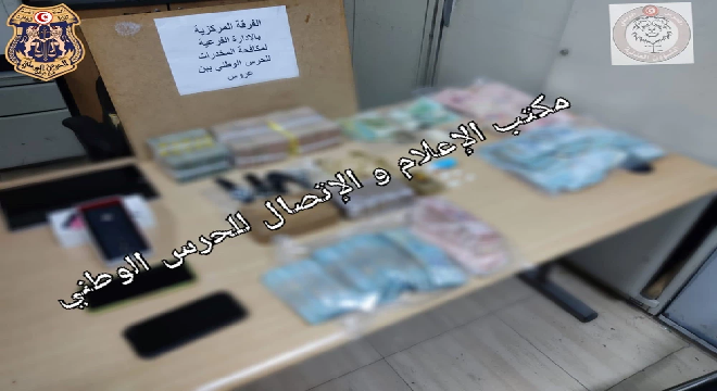 المنبر التونسي (ترويج المخدرات) – أفاد المتحدث الرسمي باسم الادارة العامة للحرس الوطني حسام الدين الجبابلي اليوم الخميس 24 نوفمبر 2022 , انه على اثر توفّر معلومات لدى الادارة الفرعية لمكافحة المخدرات بادارة الشؤون العدلية للحرس الوطني ببن عروس بخصوص نشاط شبكة في مجال ترويج المخدرات وغسيل الاموال بولايات تونس الكبرى، وعلى امتداد شهرين، امكن للوحدة المذكورة التعريف بكامل اطراف الشبكة ليتضح انها تتخذ عددا من المنازل بحي ابن سينا بتونس العاصمة مأوى لها ومخبأ للممنوعات التي تتاجر فيها والعائدات المالية التي تتحصل عليها.