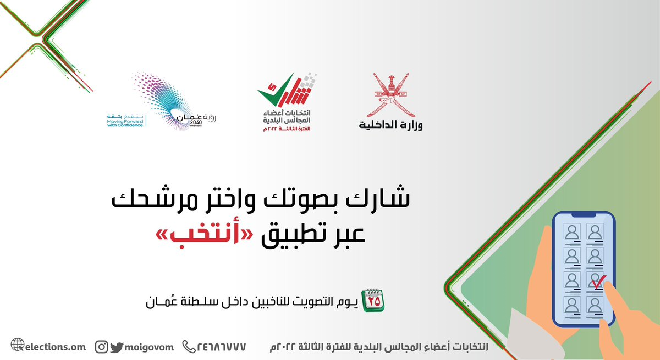 العُمانيُون يختارون غدا الأحد ممثليهم في المجالس البلدية عبر تطبيقة على هواتفهم الجوالة