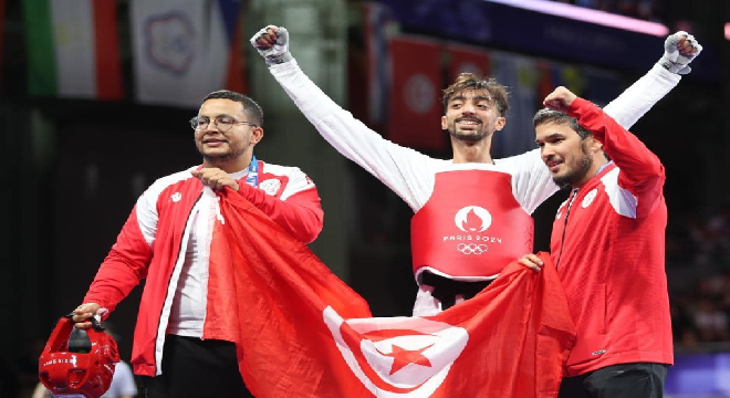 المنبر التونسي (خليل الجندوبي) – احرز محمد خليل الجندوبي (وزن 58 كلغ ) الميدالية البرنزية مساء اليوم بالقصر الكبير بباريس في منافسات التايكوندو ضمن دورة الالعاب الاولمبية 2024 بعد فوزه في مباراة التدارك على الاسباني فيسانتي يونتا 2-صفر.وهي الميدالية الثانية في رصيد المشاركة التونسية في العاب باريس 2024 .وكان المبارز فارس الفرجاني فاز بميدالية فضية .