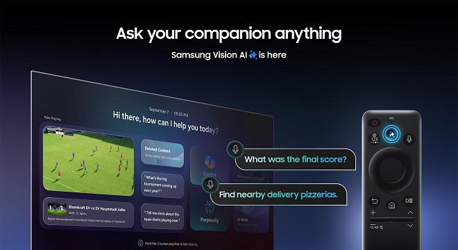 تعتمد منصة Vision AI Companion على دمج عدة نماذج ذكاء اصطناعي—من بينها Microsoft Copilot و Perplexity—لتقديم إجابات شاملة ومنظّمة. كما تدعم خدمات Live TV وSamsung TV Plus وتطبيقات البث المختلفة، مما يتيح توصيات للمحتوى، والمساعدة في تخطيط الرحلات، والبحث عن المنتجات.