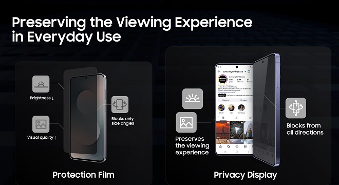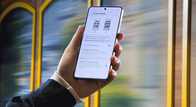 - جودة بصرية مفعمة بالحيوية للحظات المشتركة: على عكس الإضافات أو لصاقات الحماية التي تقلل من سطوع الشاشة أو تسبب تشوّه الألوان، تحافظ هذه التقنية المدمجة على غنى الألوان ودقة التفاصيل المعروضة، وتبقى فعّالة حتى في وضع العرض الأفقي، مما يتيح مشاركة مقطع فيديو مع صديق مع إبقاء أعين المتطفلين بعيداً.