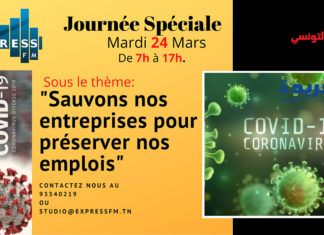 المنبر التونسي (نحفظ مؤسساتنا ) - ظّم إذاعة إكسبراس أف أم يوما خاصّا و استثنائيا تحت شعار "نحفظ مؤسساتنا لنحافظ على وظائفنا" وذلك يوم الثلاثاء 24 مارس 2020