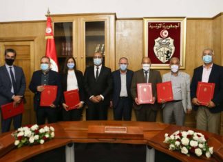 المنبر التونسي(عمال الحضائر) - أشرف رئيس الحكومة هشام مشيشي مساء اليوم الثلاثاء 20 أكتوبر 2020 بمقر وزارة الوظيفة العمومية على موكب إمضاء اتفاقية تسوية...